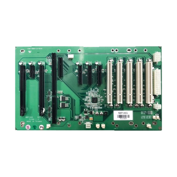 The NBP 1465 is a 14 x Slots backplane with 1 x SHB slot,1 x PCIe x16, 1 x PCIe x8, 3 x PCIe x4, 1 x PCIe x1 and 5 x PCI slots. NBP 1465 follows PICMG 1.3 platform specifications and supports ATX power supply.