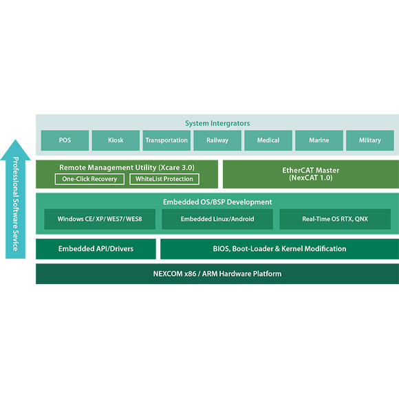 NEXCOM’s professional service include software service ranging from BIOS, Boot-loader & Kernel modification, embedded OS/BSP development, one-click recovery, and white list protection. The professional service aims to help optimize and simplify hardware and software application implementation, and solve the common headache between hardware vendor and Solution Integrators. For detailed professional software service, please download the datasheet.