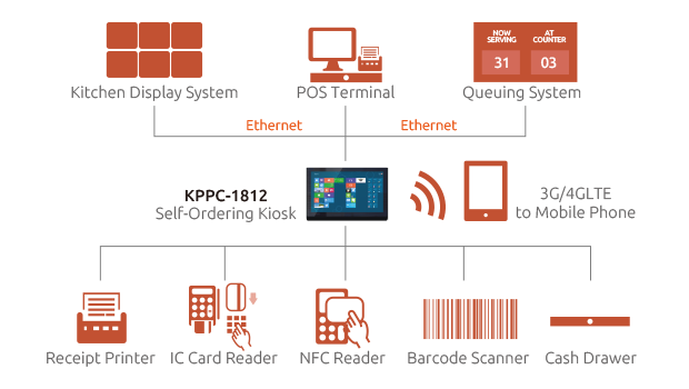 NEXCOM’s KPPC series of Panel PCs are restaurant kiosk solutions designed for self-ordering and KDS applications. NEXCOM’s KPPCs power the self-service kiosks to provide a complete digital service counter experience from start to finish, helping restaurants serve more customers, reduce wait times, reach out to a broader customer base, and therefore increase revenue.